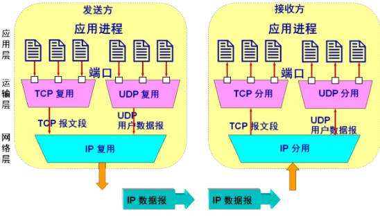 - 这表明运输层有一个很重要的功能——复用和分用